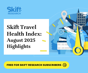 De Skift Travel Health Index is een realtime maatstaf voor de prestaties van de reisindustrie in het algemeen en de kernsectoren ervan in 22 landen, met de focus op alle belangrijke reissectoren. De index biedt de reisindustrie een krachtig instrument voor strategische planning en het volgen van de wereldwijde reisprestaties.